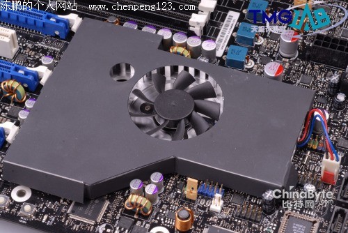 与我们普通台式机主板不同的是, D5400XS整合了6321ESB ICH控制芯片,功能类似于我们通常了解的ICH南桥。它和两颗NVIDIA芯片一起,由一块扁平的散热器和风扇提供散热。