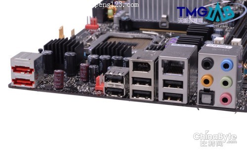 Intel D5400XS主板I/O端口部分提供了一个千兆网络接口、6个USB接口、1个 IEEE 1394接口、1个 S/PDIF接口、5个 模拟声卡接口和光纤输出以及2个eSATA接口,充分满足用户的需要。