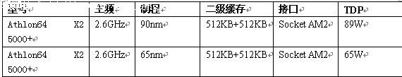 同样是Athlon64 X2 5000+,因为制程的不同,TDP(热设计功耗)由89W降为65W