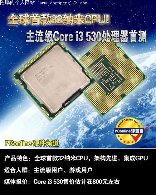 与以往稍有不同,这次Intel并没有把最新的32nm制作工艺率先用到旗舰级的Core i7上,而是直接运用到主流级的Core i3上,让更多用户能率先体验到Intel的最新产品。离Core i3的发布还有一段时间,我们PConline抢先拿到了其中的Core i3 530,第一时间为大家送上这款CPU的首测。