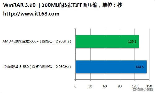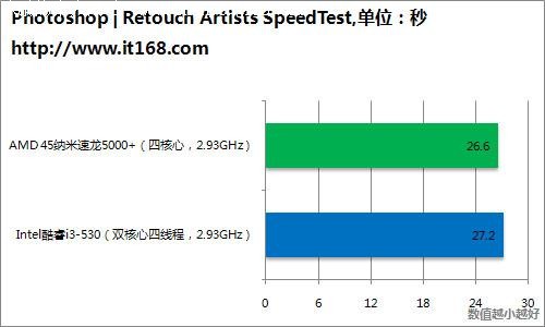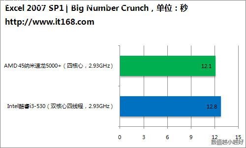 AMD新速龙5000+在PhotoShop CS4图片渲染和WinRAR图片压缩上会比酷睿i3-530快些,而两组Excel表格运算虽然一直是Intel处理器的强项,但双拳难敌四手,双核心四线程的i3-530还是败给了四核心的5000+。