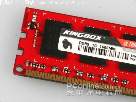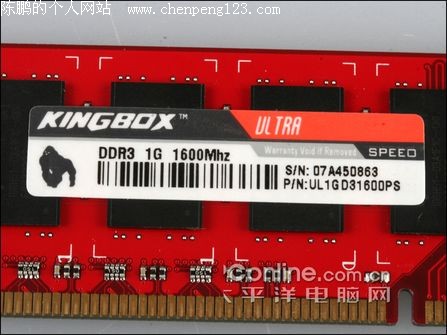 内存的铭牌上标明了这条内存的身份,单条1GB,频率为1600Hz频率,内存每通道带宽达到了12.8GB/S。内存其他参数并没有给出。但我们从官方资料上来看,这款内存CL值为9,高于JEDEC标准的CL=10。