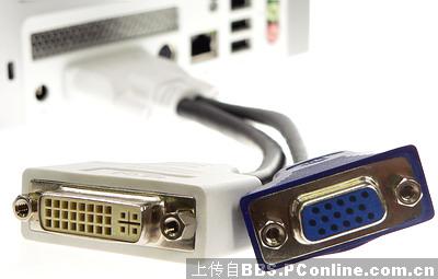 另外一种则是DVI-I接口,可同时兼容模拟和数字信号。兼容模拟幸好并不意味着模拟信号的接口D-Sub接口可以连接在DVI-I接口上,而是必须通过一个转换接头才能使用,一般采用这种接口的显卡都会带有相关的转换接头。