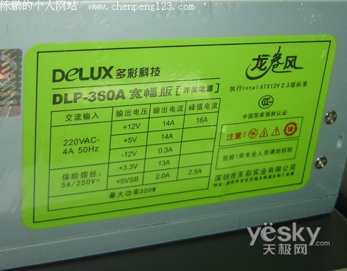 300W电源是目前市场出货量最大的产品,价格方面300W电源有着很大的优势,最大可以支持GTS250平台稳定运行。不过在市场中总有些鱼目混珠的产品出现,用户在购买时需要注意,尽量选择品牌电源产品。多彩有一款针对低端用户设计的DLP-360A宽幅版电源做工和设计用料都相当不错,是目前300W电源上中不可多得的产品。目前商家报价166元喜欢的朋友可以考虑一下。