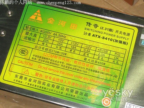 金河田传奇劲霸ATX-S410加强版电源铭牌