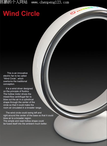 这种新型电扇能产生神奇的凉风,由于没有叶片,不会覆盖尘土,或者伤到好奇儿童的手指。由Zizi Chen设计。