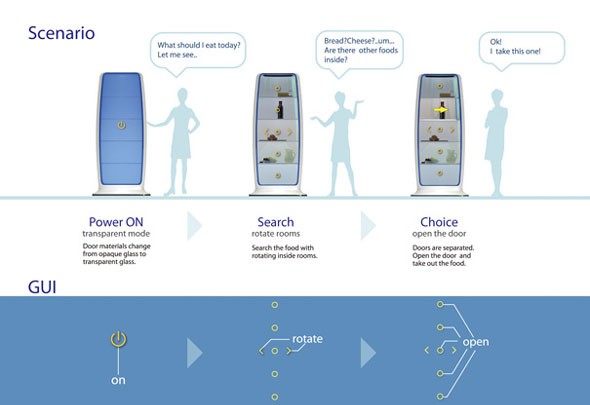 打开塞满食物的冰箱,你会不会犹豫好久才决定取哪样东西?其实这样是相当浪费电的,设计师Yoon jung Kim和Jong rok Lee为此设计了一款透明门冰箱。这样一来,在打开冰箱门之前,你就可以选好想取出的食物。