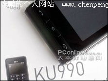 由于KU990采用了触控屏幕的设计,因此也将数字键盘一省而去,在手机正面,也仅剩下拨号、“C”键与挂断键在屏幕下方一字排开,磨砂的材质与底部外壳保持一致,使得手机整体外观浑然天成。在手机的侧键布置方面,我们可以更进一步体会到LG对KU990的拍摄功能的信心,一个三阶式拍摄模式键、防震功能键(同时也是键盘解锁键)与拍摄快门键全部布置在手机右侧,为用户带来了专业DC的操作感受。在手机左侧,只有一个配有防尘罩的一体式接口。值得一提的是KU990还在摄像镜头的周围配备了一个JOG WHEEL滚动键,可上下分别转动30度左右。这个键集合了手动对焦、数码变焦、音量调节、菜单卷动功能,非常强大。整机看来非常的整洁,但是其细心的人性化设计让人非常满意。