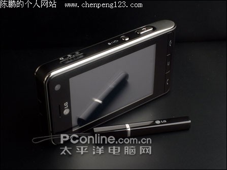 为了能使用户进行更好的操作,LG还为KU990配备了一致精美的手写笔。这支手写笔并不是以传统的方式隐藏在机身内部某处,而是作为挂饰成为KU990的另一个小吊饰,这也是KE850所不具备的。圆四方柱型的黑色小笔采用了钢琴烤漆处理,光洁的外表与手机本体相互映衬,更加透出一股典雅的气质。拔开笔盖,手写笔会自动伸长,合理的笔身长度给用户带来了非常好的手写感觉。得益于这支特制的手写笔,整个触控手写操作非常流畅,屏幕反应灵敏,定位精确。