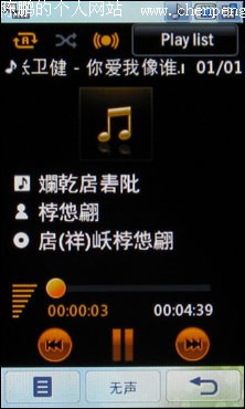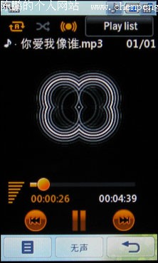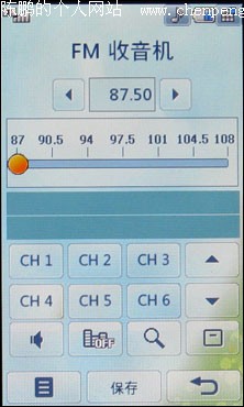 KU990的定位是一款拍照娱乐手机,其除了超强的摄影功能之外,娱乐播放性能自然不会令人失望。KU990内置了独立的音乐播放器,进入播放器,黑色的界面与金黄色的按键选项搭配的恰到好处,非常好看。选项方面,除了常规的重复、无序播放外,用户还可以选择专辑封面或动态效果两种显示界面。但是KU990依然没有提供对EQ的支持,让人稍感遗憾。值得一提的是KU990支持后台播放,让用户能够更好的享受手机音乐。另外,KU990虽然没有直接配备3.5mm标准耳机接口,但是其随机附赠一条带有3.5mm接口的耳机转换线,用户可自行更换其它耳机。除了音乐播放器外,KU990还提供了对FM调频收音机功能的支持,最大限度的提升娱乐性。