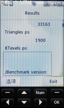 对于非智能机而言,其JAVA性能就显得非常重要,为此,笔者对其安装了JBenchmark系列软件进行了专项测试。从测试成绩看来,KU990的JAVA表现非常不错,比起KE850有着大幅度的提高,整体处于中上水平,足以应付日常使用需要。