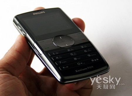 飞利浦9@9w三围尺寸为102×52×12毫米,机身正面采用银色和黑色的经典商务搭配,非常稳重,上下分别印有“PHILIPS”和“Xenium 9@9”的标志,昭示着她的名门出身。同时飞利浦9@9w还采用宽幅屏幕设计,设计思想与PALM的Treo 750V看起来不谋而合。 手机键盘处最为纤细,屏幕处略厚,符合流线形设计标准。