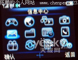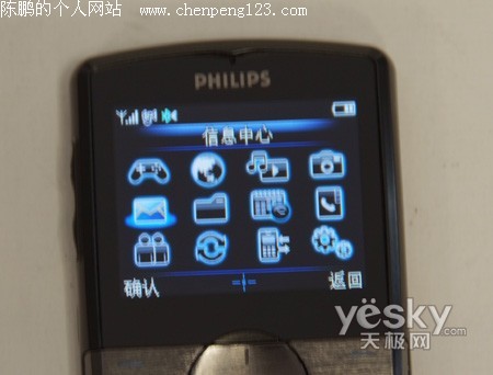 由于飞利浦9@9w的宽屏设计,该机菜单使用了3行4列式样的“另类12宫”。12宫菜单设计简捷大方,神秘的黑色界面很有索尼爱立信的FLASH主题的风采。只是飞利浦9@9w的界面不能做任何修改,连最基本的配色都不能改变。