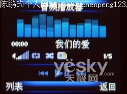 飞利浦9@9w自带MP3播放器和视频播放器,播放音乐时需要把音乐文件放入手机内存或存储卡的“My Music”文件夹中,音乐播放器就会自动识别列表并开始播放,飞利浦9@9w的音乐播放还有简单的均衡器效果可以选择。