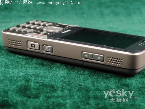 在机身左侧分别设置有数据线接口、Micro SD存储卡扩展槽、充电器接口。机身右侧则设计有双声道立体声扬声器,音量调节键(在拍照模式下为焦距调节键)拍照快捷键及照片管理快捷键。机身顶部设计有手机链孔,耳机插孔和开/关机键,而机身顶部则配备了单孔话筒。
