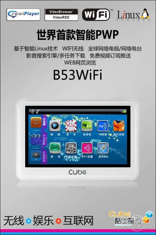 当然,光有Wi-Fi功能,找不到视频资源也是白搭。Cube B53Wi-Fi的设计商也深知这一点,因此特别定制了在线影音这个网络应用,这个应用平台类似苹果app store,在里面不断提供并持续更新众多的在线内容,包括网络电视、最新歌曲、视频下载等,提供有丰富的在线资源任君选择。有时想收看电视或收听电台节目的,在无线高清频道中还有一个在线网络电视、电台的频道,在这个频道中,不仅可以实现在掌中观看或收听国内电视/台的需求,还能够收看及收听到许多国外的电视/台的节目,对于像想边看电视边学英语的朋友来讲十分方便。