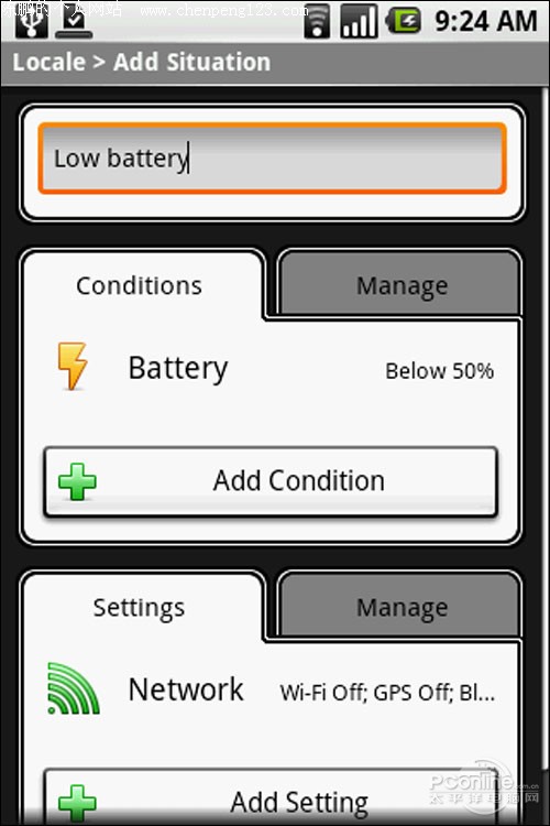 Locale是一个具有地点感知功能的设置管家,根据软件功能描述,它可以根据智能MP4的电池电量,所在地点,当天日期及时间,来自动配置Android的设置。不必介意早晨公交上的噪杂会影响到你的视听,也不用担心办公间里,用智能MP4偷偷看视频时突然爆出的巨大声音。