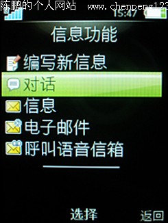 除了传统的短信界面之外,YARI U100还支持对话模式,就是能查看与当前对话人的历史聊天记录。这在Windows系统的手机中早已非常常见,但在索尼爱立信手机中还是刚刚加入,像QQ般的聊天模式还是很实用的。