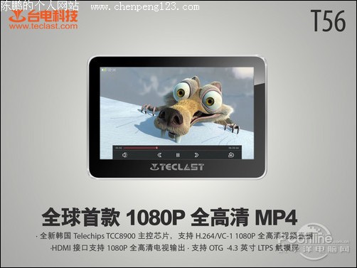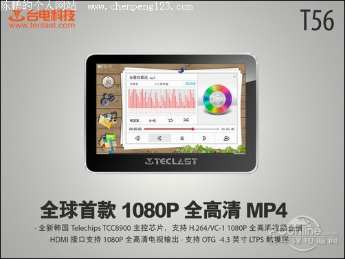 可以预料,这款全球首台FULL HD全高清MP4一定会引起数码播放器市场的一场大海啸,凭借跨越式的1080P高清H.264、VC-1视频播放、韩国Telechips稳定强劲的核心、HDMI/OTG等全面的规格,以及台电科技一贯犀利的价格攻势,非常有可能大大的刺激高清MP4市场的需求!让我们一起期待这款台电T56能给带来更多的惊喜吧!