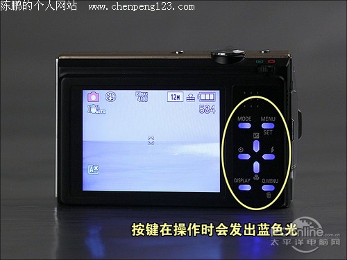 松下FP8背面那半透明的按钮在操作时会发出蓝色光,效果非常独特,这不仅仅是为黑暗中的操作提供更多的便利,也为整机那别致的做工增添多几分时尚感。