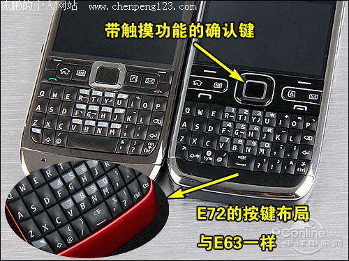 此外,诺基亚E72在键盘的导航键区上也有加大了一些,左右功能键以及通话/挂机键的键位都加大了,键面更加平坦了,所以手感上跟E71有较大的区别,按键会比E71软一点,孰优孰劣还是难以断定。