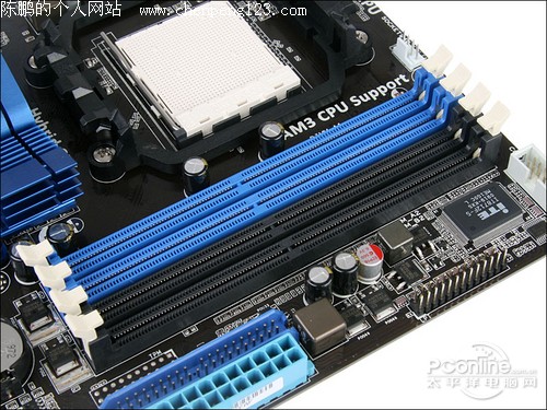 在内存插槽方面,三款主板都提供了DDR2内存插槽,均可以支持双通道DDR2内存,并且由于提供的是DDR2内存插槽,也是使得三款主板可以支持AM2+和AM3系列处理器。不过,在内存插槽方面,除微星 785GTM-E45主板外,其他两款主板都提供了4条内存插槽。不过话又说回来,两条2G内存条组成的双通道4G内存也足够大多数人的将来两三年内的使用需要了,并且两三年后再升级DDR2内存,也是一个代价高昂的事情。虽然微星 785GTM-E45主板少了两条内存插槽,但不会成为扩展上的瓶颈。