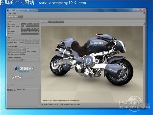 CineBench R10为目前最新版的Cinebench系列测试软件,它采用了3D设计软件CINEMA 4D的3D引擎,支持多线程同时运算,可以用来评测多核处理器的效能。