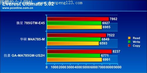 综合来看,三款主板平台在CPU和内存性能测试方面的成绩都很接近,毕竟都是使用同样的内存和CPU,三款主板在设计功力方面又很接近,出现这样的结果也很正常。