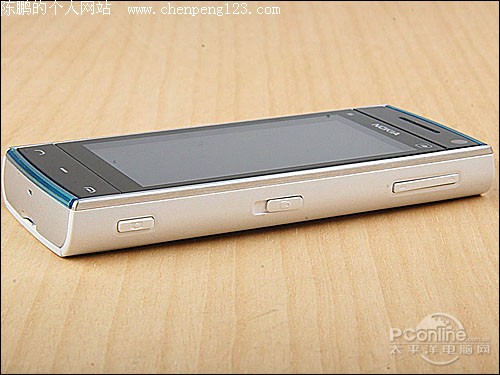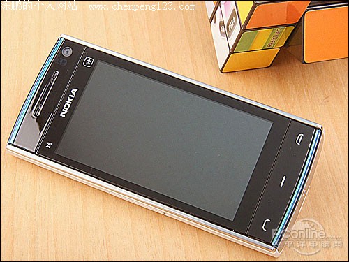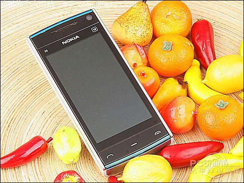 在外形上,比起5800的低调,X6采用了个性化的颜色搭配和外形设计,要显得更光彩夺人,采用了和5800一样的经典修长外形,没有了窄边的设计,X6看上去更宽。由于是触控屏,所以避免不了屏幕占据了手机正面的绝大部分位置。边角没有经过圆润处理,让X6看上去更加的硬朗。在这里不得不佩服这个芬兰巨人的工业设计能力,诺基亚很少走轻薄路线,由于X6不可避免的厚度问题,但X6的拉长设计让其配上这个厚度却是适合不过。