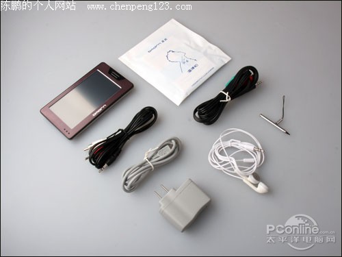 最后来看一看蓝晨BM-995HD的配件,厂家非常大方,基本上能给的都给了,有视频输出线、音频输出线、USB接线、充电器、原装耳机、触笔、挂绳、试屏布、说明书、保修卡,应有尽有。