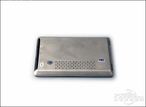 背面机壳进行了磨砂效果处理,不仅有效防止指纹和汗渍,而且也提高了机器的耐磨度。背部还印有产品信息和“潘帅”的头像,底部则是一片区域不小的扬声器口。