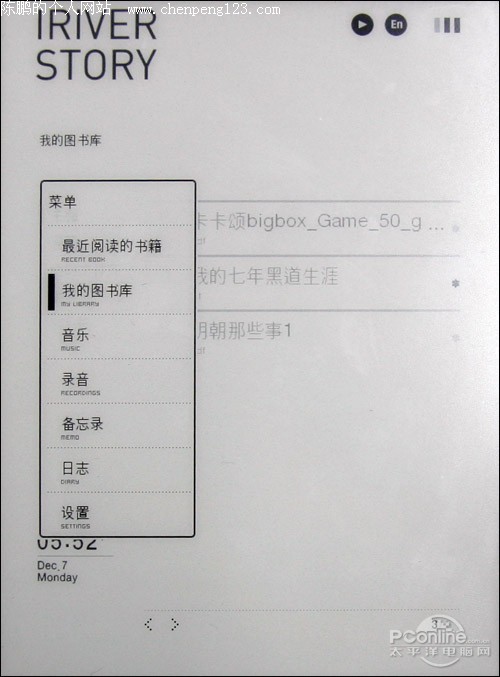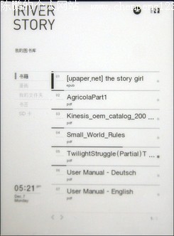 可以看到,iriver story的媲美传统图书的目录式UI界面设计,使它脱离了数码产品那种生硬的感觉,直观醒目,书香四溢,通过快速检索功能,可以从“我的图书库中”迅速找到自己想看的内容,设计颇具人性化。iriver story还具备PDF段落重排功能,可以充分适应屏幕自动调整换行,尤其是放大观看时,段落会自动调整,提高用户阅读质量。另外,iriver story可以设置横屏模式,并会自动适应屏幕大小,达到最佳阅读效果,让你想怎么看就怎么看。