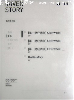 笔者发现,用iriver story浏览漫画要比看传统的纸质漫画书要舒服的多,通过E-ink屏幕显示的画面相当精细,而且页面大小也同普通漫画书相仿,视觉效果很突出,只是图片间的切换速度不够迅速,还有待改进。除了看漫画外,iriver story还可以对电子版的报刊杂志进行浏览,但屏幕尺寸和杂志实际页面大小存在一定差距,且不支持图片放大功能,字体较小,阅读起来比较吃力。