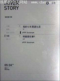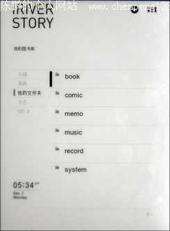前面已经谈到,因为iriver story采用先进的E-ink屏幕,具有高省电低功耗的特点,所以在一次充电满后,可以阅读近9000页,播放约24小时音乐,录音约5小时,续航能力非同一般;iriver story的文件传输读取速度也令人满意,最高 写入速度为2030KB/S,最高读取速度为12299KB/S,符合USB 2.0传输协议,再加上最大支持32GB的外置SD卡,用户可以根据需求,自行安排和分类整理图书,音乐以及录音文件。