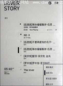 除了支持强大的阅读功能外,在数字多媒体播放器领域驰骋多年的iriver也将自己先进的音频播放技术融入到iriver story内,它支持MP3、WMA、OGG音频播放,无论是外音播放还是用耳机试听,音色纯正,音质表现优良,而且可以对播放模式和EQ音效进行设定,让你在阅读的同时欣赏自己喜欢的音乐,功能不可谓不强大。倘若是碰到有音频资料的书籍,能一边听一边对照书上的资料,作为一款学习辅助工具用的机器也是十分方便的。