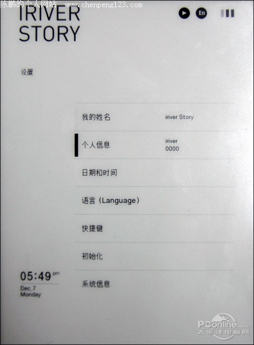 另外,iriver story的设置功能可以对机主姓名、语言、快捷键进行设置,使机器按照用户的喜好呈现出最佳的状态。