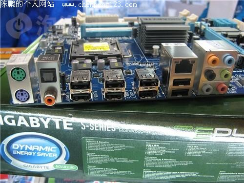 背板I/O接口部分,主板提供PS/2键鼠接口,8个USB接口,一个同轴接口,千兆网卡接口以及音频接口。