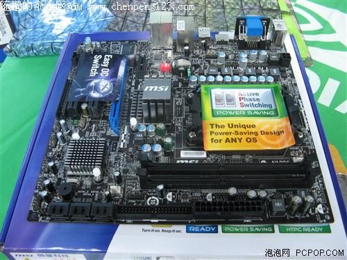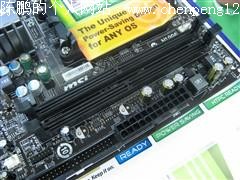 供电部分,主板CPU供电部分用料非常扎实,采用了全固态电容搭配全封闭式电感设计,组成了4相供电,可完全满足四核处理器的供电需要,同时具备了非常强悍的超频能力。内存插槽,主板提供了2条DDR2内存插槽,可支持双通道DDR2 1066/800内存,比较遗憾的是该主板没有提供对DDR3内存的支持。