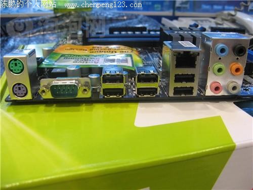 背板I/O接口部分,提供了实用的接口设计,包括一组PS/2键鼠接口,一个串口,6个USB接口,1个千兆网卡接口以及音频接口。