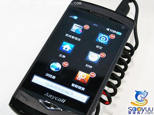 三星S8500的界面采用的是最新的Touchwiz 3.0的界面,首屏最多可以扩展至10个界面,每个界 面只能加入一个小工具,可以通过左右滑动来进行切换,这和目前三星很多具备Touchwiz 3.0界面的非智能手机没有什么区别。