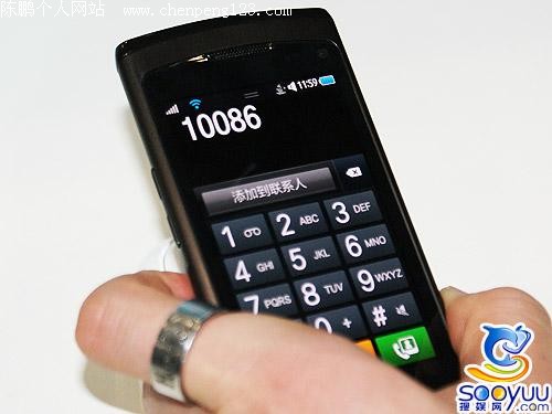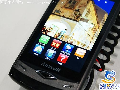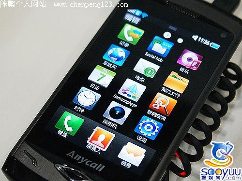 进入主菜单之后,感觉和苹果iPhone的界面有很高的相似度,下边一栏依旧固定,上面的主程序有12个栏目,只不过苹果采用的是4×4的菜单,而三星S8500为4×3的菜单,所以看上去显得更狭长。