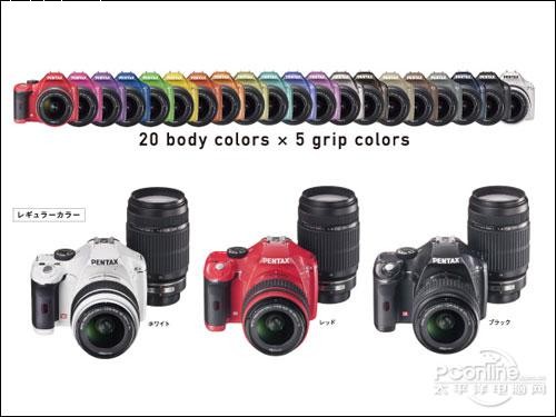 数码相机推出市场的时候提供多种颜色以供选择是常用的手段,但数量上也就几种颜色而已,多的也不过是10种,宾得K-x提供了100多种色彩搭配,在数码相机界是个不可思议的事情,此外还推出了数种特殊纪念版,颜色上更为丰富。