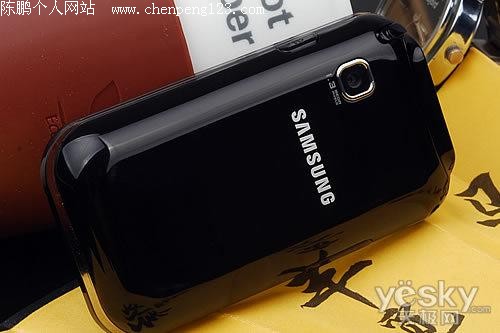 在机身背面,三星的铭牌位于背板最显眼的位置,一颗130万像素摄像头成为背板上的主要 点缀,亚克力材质背板反光度较好,但同时容易吸引指纹和油污的光临,若不经常擦拭,C3300K很容易成为指纹收集器。