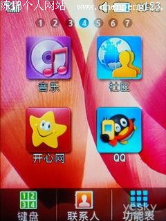 在界面方面,C3300K依然采用了三星的特色界面Touchwiz,不过由于屏幕尺寸的原因,该机省略了Widget边栏,如果想要调整桌面上的组建,就需要进入到显示设置中进行调整。不过该机为用户准备了多达7屏的分页,满足用户对手机快捷功能的使用需求。