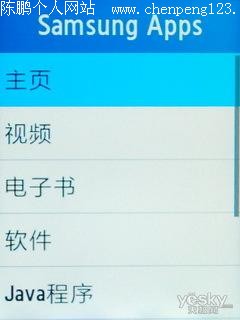 在互联网浏览方面,该机内置的浏览器浏览效果较为理想,最大的限制在于手机屏幕可以显示的空间不足。由于该机定位较为低端,所以手机并没有为用户准备WLAN数据连接,这一点也在情理之中。此外该机预置了移动QQ和Samsung Apps应用程序商店,丰富了手机的互联网应用。