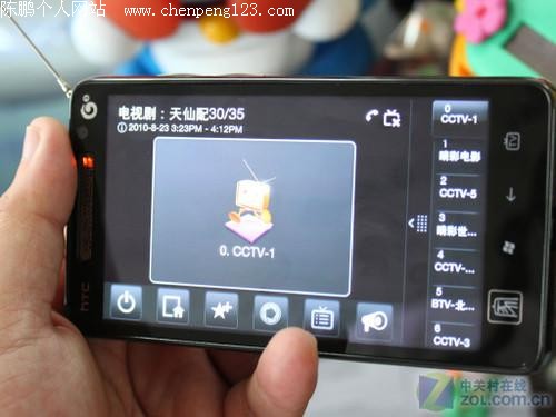 而HTC天玺也是对CMMB手机电视功能非常的重视。下方就有专门的CMMB电视快捷键,点击之后就可以看到最新的节目列表,点击之后就观看CMMB电视了。不过根据笔者测试发现最好还是在靠窗户的地方观看,否则信号不太稳定