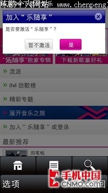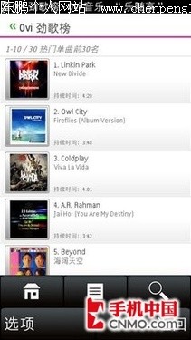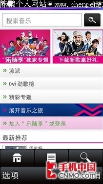 1、打开诺基亚5230上”音乐-Ovi音乐“进入乐随享手机页面。
