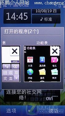 第三大特色就是多任务管理器了。启动的方式没变,长按菜单键就可以呼出,但是相比原来挤在屏幕下边缘的状态,塞班3直接以缩略图的样式呈现,更加方便用户直观地管理后台运行的程序。