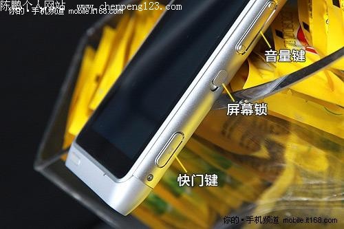 刚才介绍外观时笔者提到,诺基亚N8的厚度只有12.9mm,但在机身右侧,该机却使用了和超薄机身不符的大按键,无论是音量键、屏幕锁键还是快捷键,每一颗的面积都足够你随心使用,倒是很符合N8的大气外形。