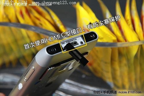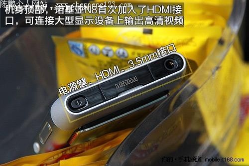 和很多智能机一样,诺基亚N8也在机身顶部安排了电源键和3.5mm耳机接口,不过在两者之间该机还隐藏了一项秘密武器,那就是HDMI接口,这个新技术虽然早在去年年底就被摩托罗拉XT800实现,但在Symbian手机中却尚属首次。